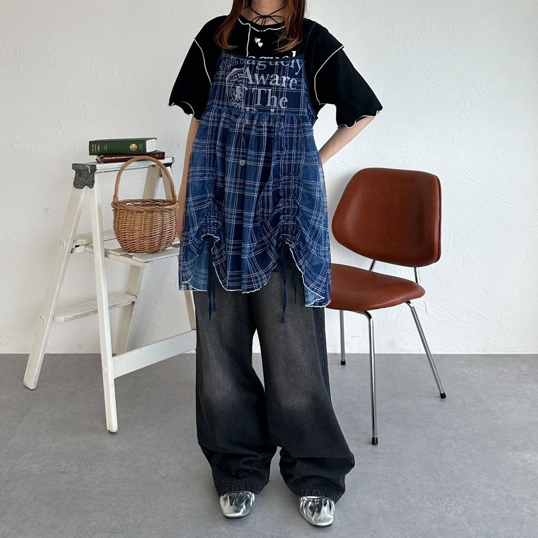 Kutir 格紋紗紗吊帶