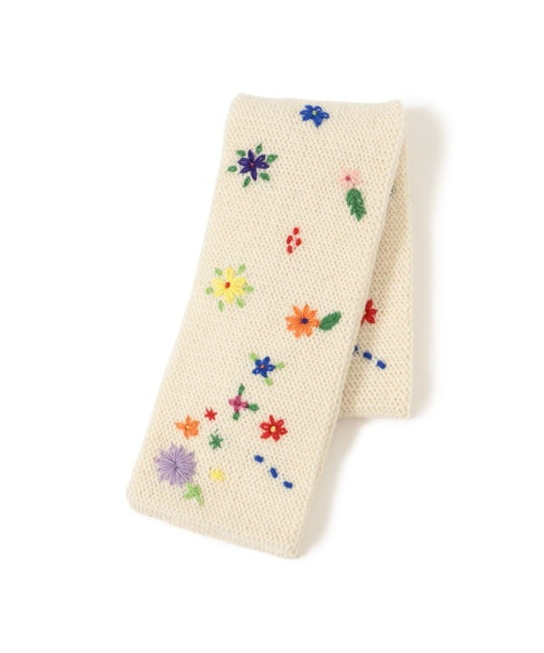 BEAMS BOY 100%羊毛花花刺繡頸巾