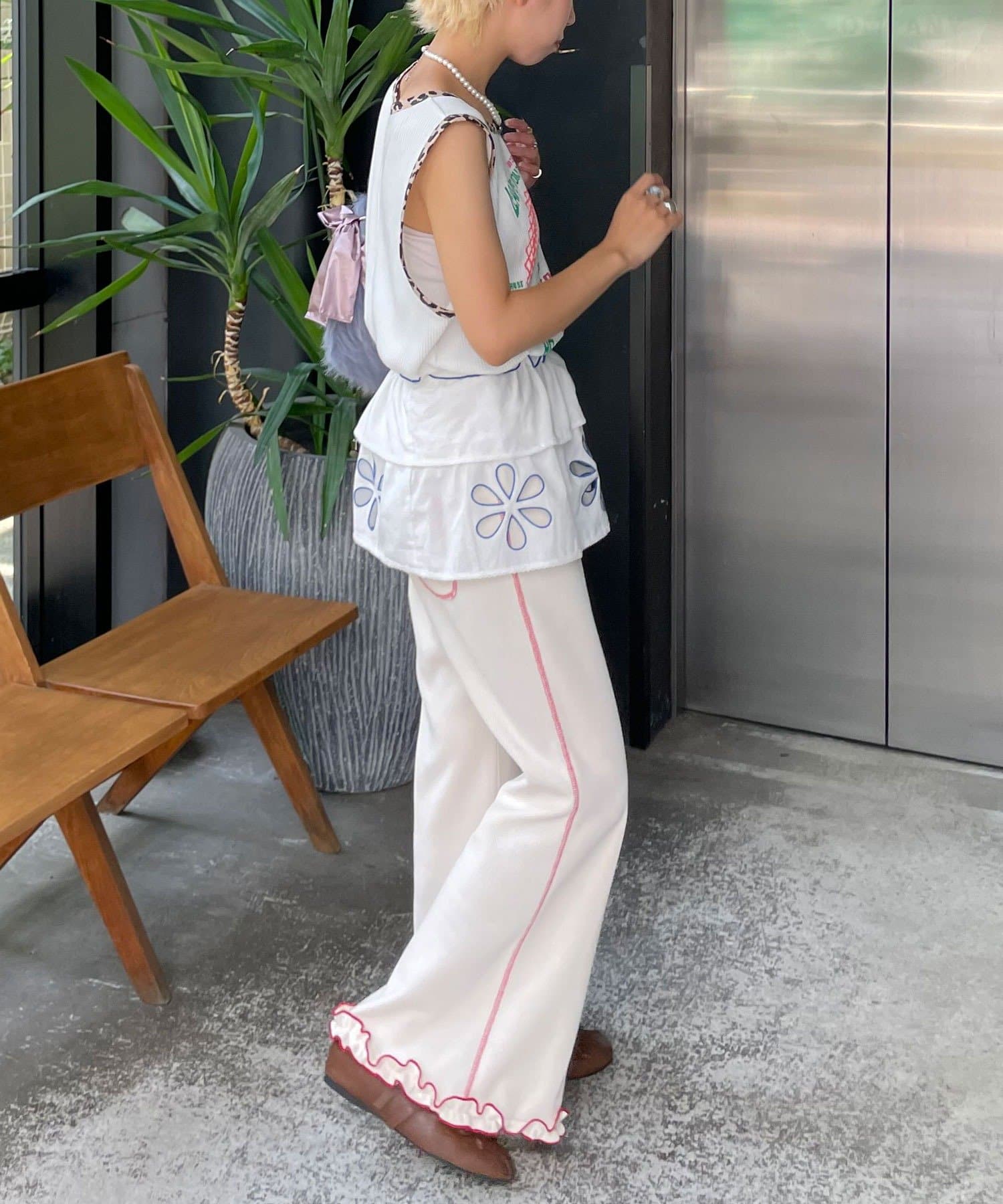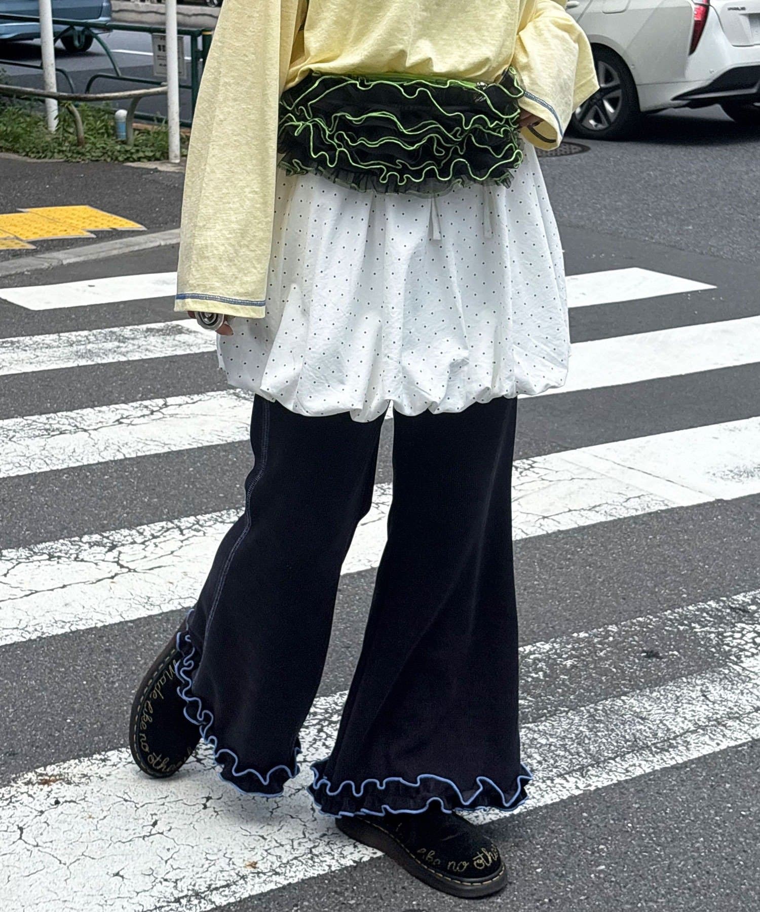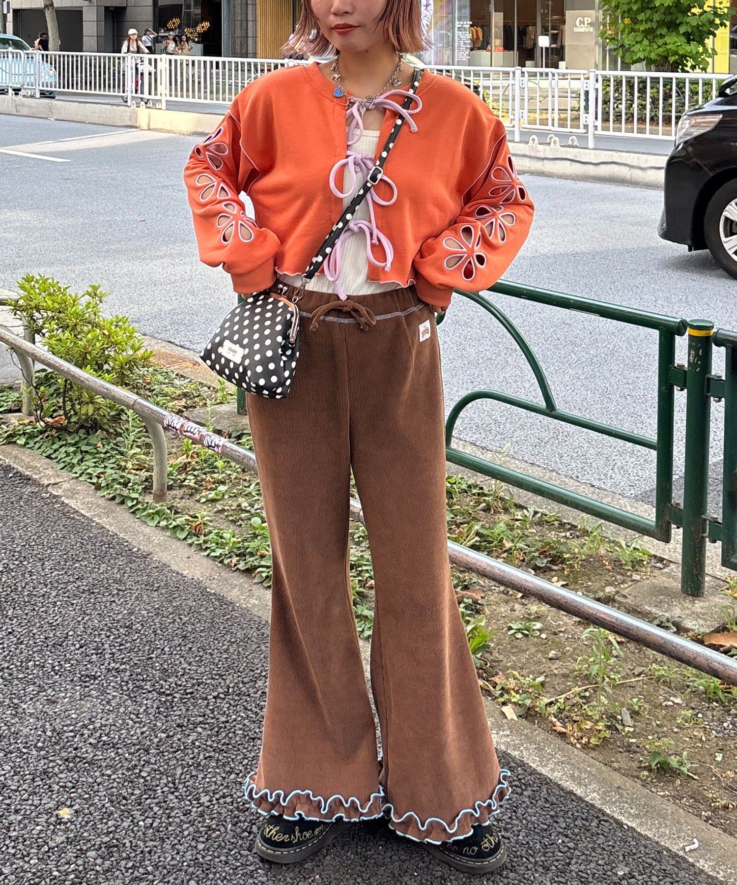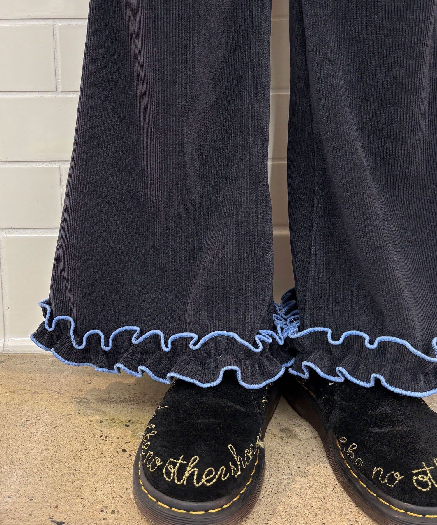 HELLO.SANFRANCISCO 燈芯絨下擺荷葉邊喇叭褲