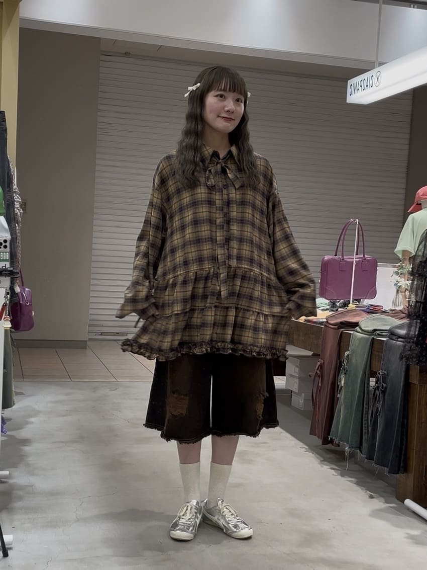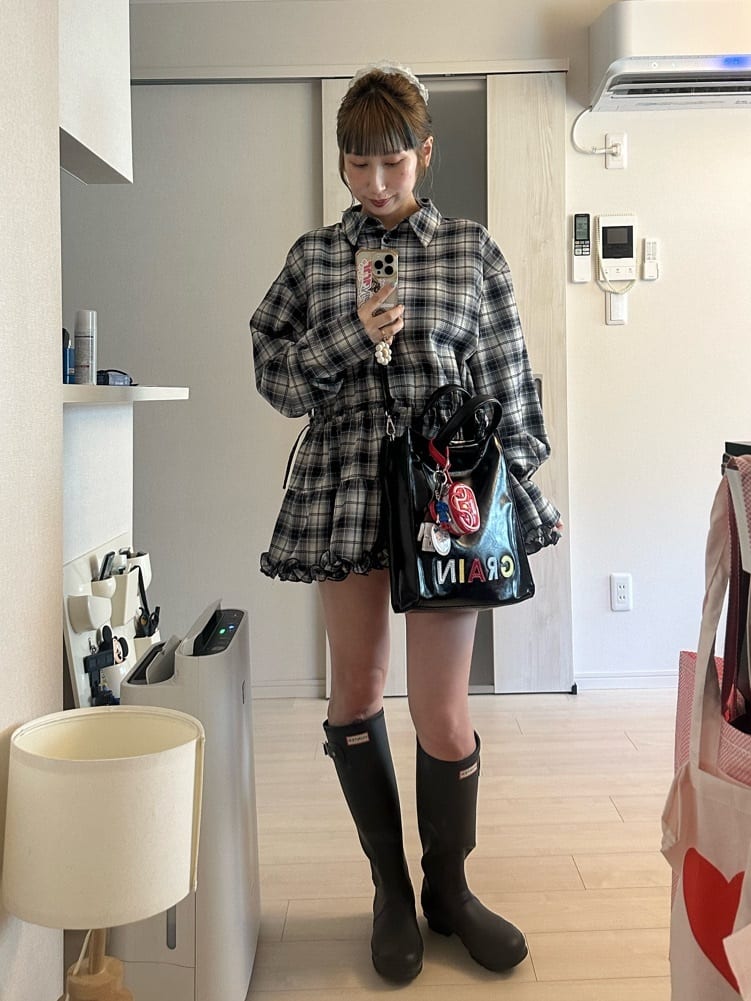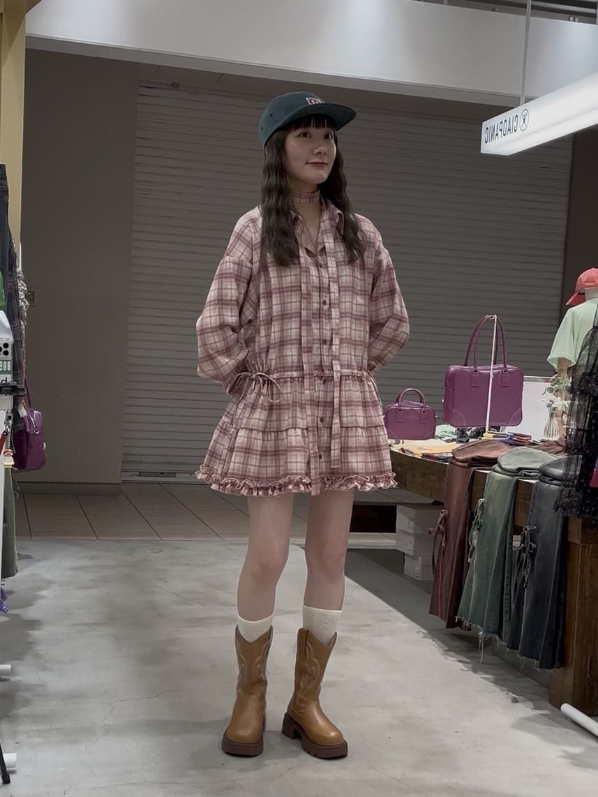 CIAOPANIC 領結層疊格紋襯衫裙