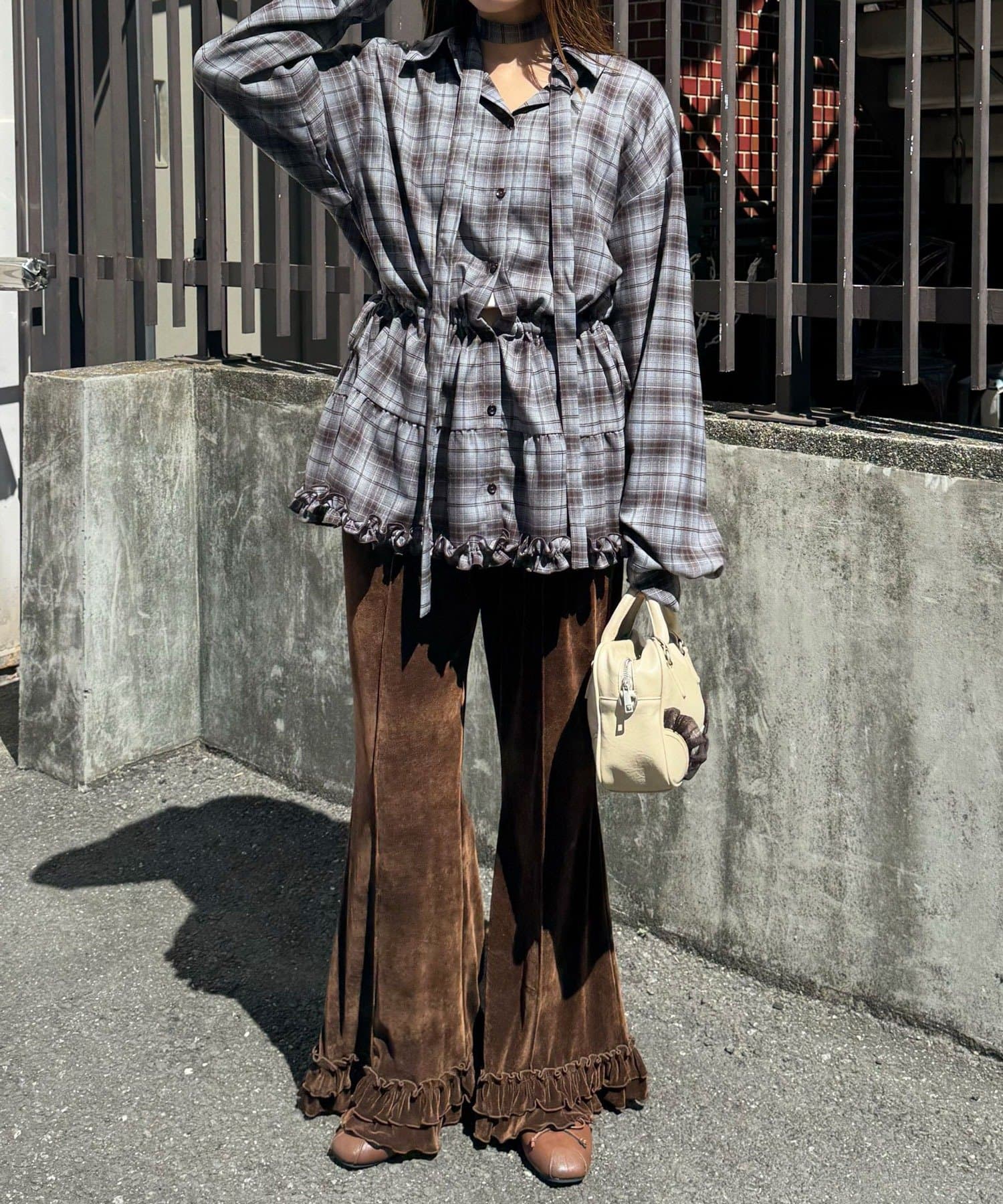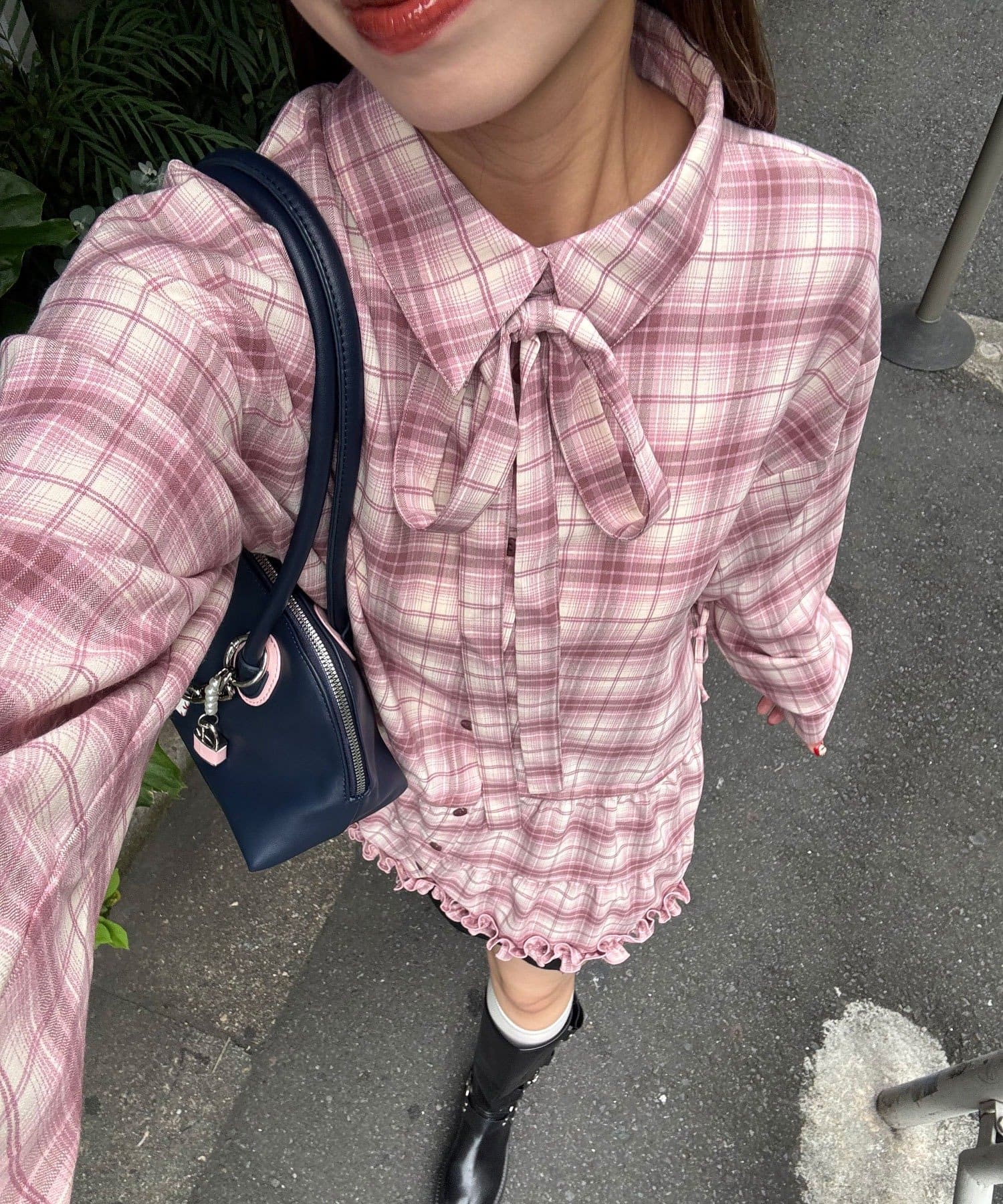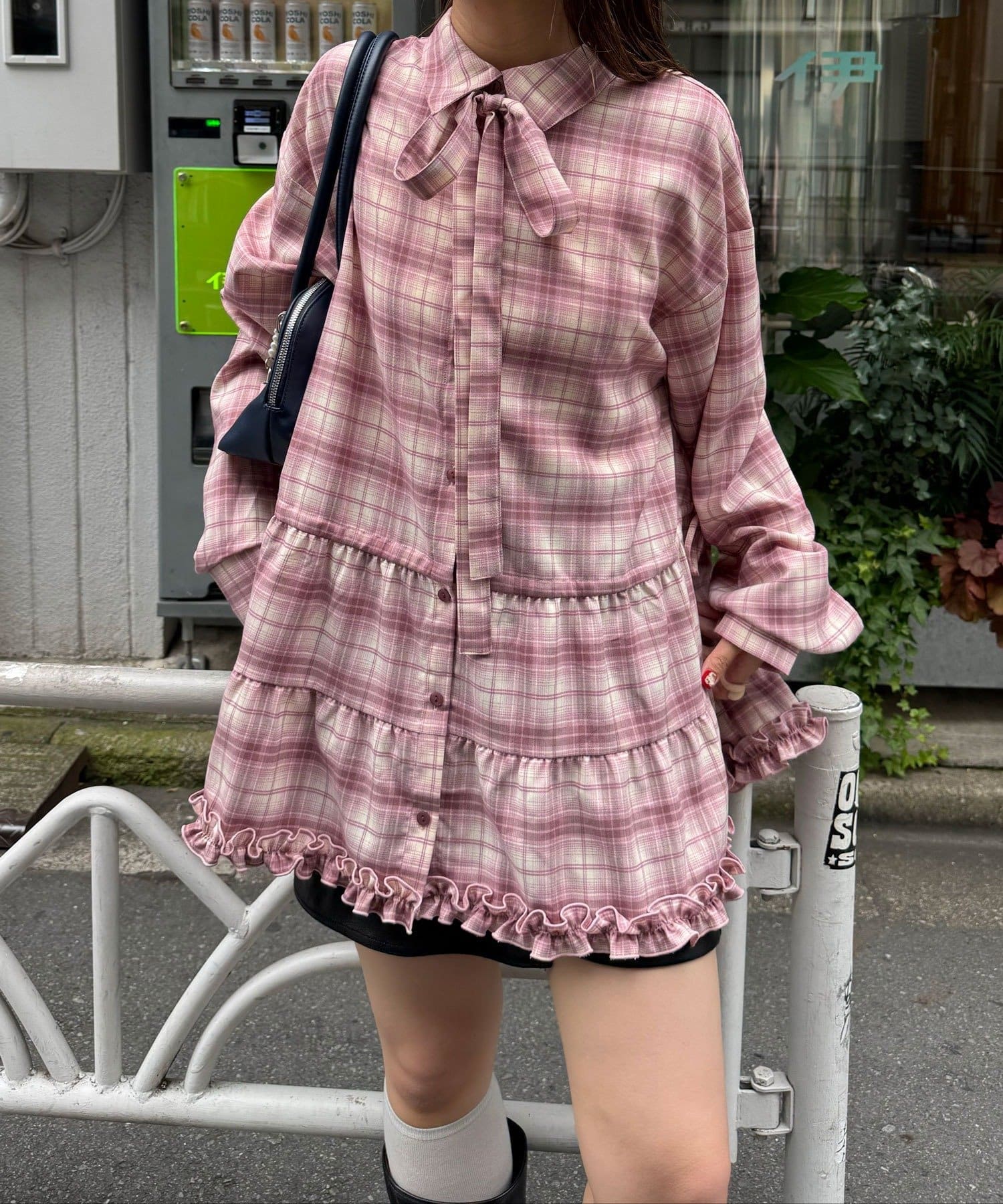 CIAOPANIC 領結層疊格紋襯衫裙