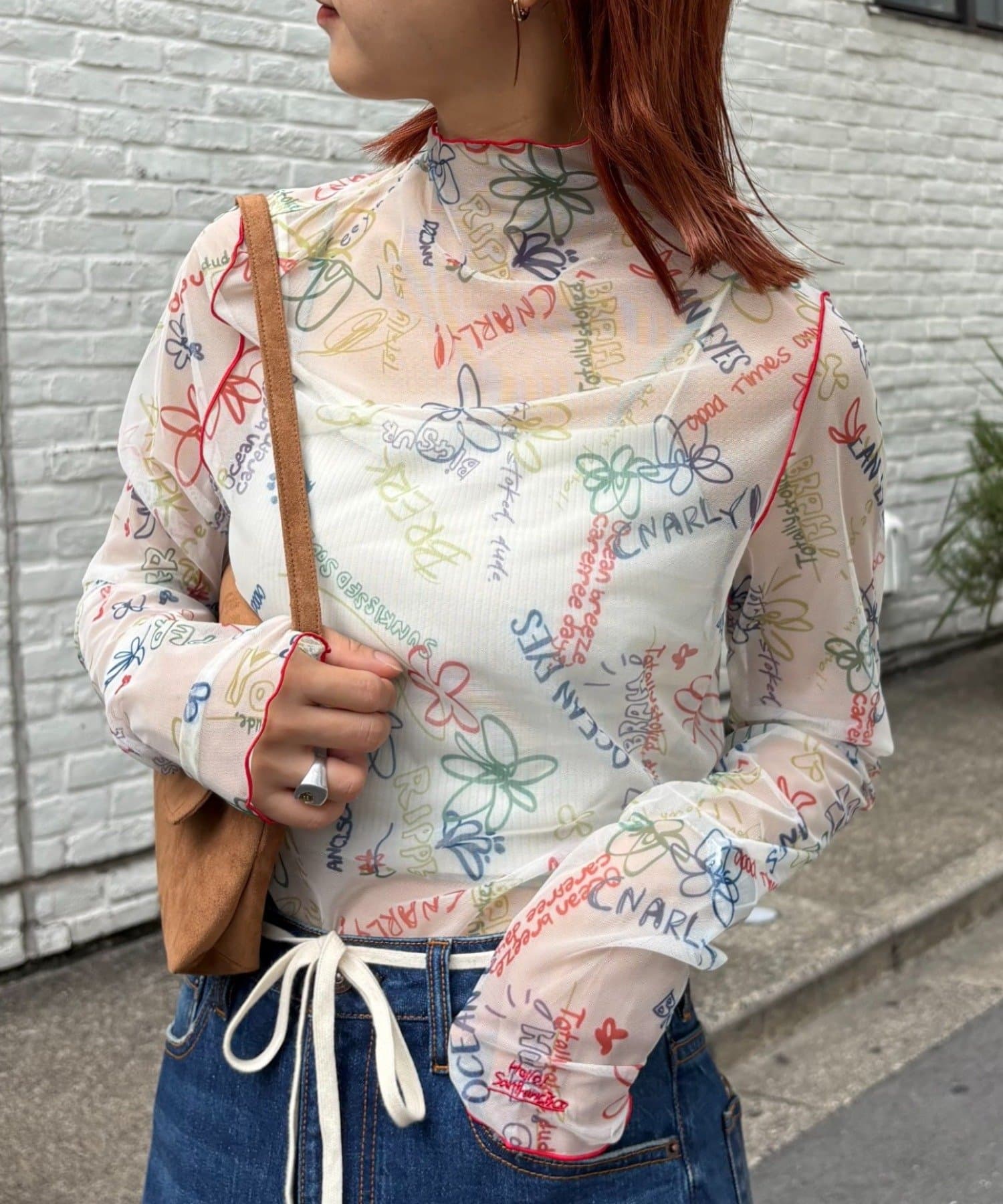 HELLO.SANFRANCISCO 塗鴉印花 sheer top