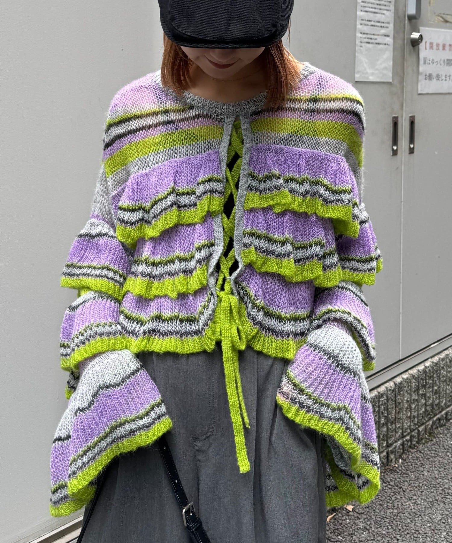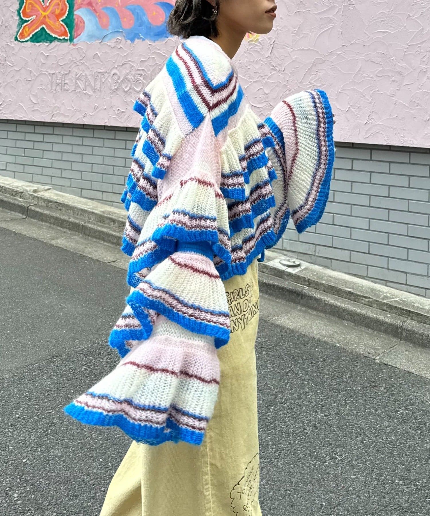HELLO.SANFRANCISCO Multi-border sheer ruffle knit