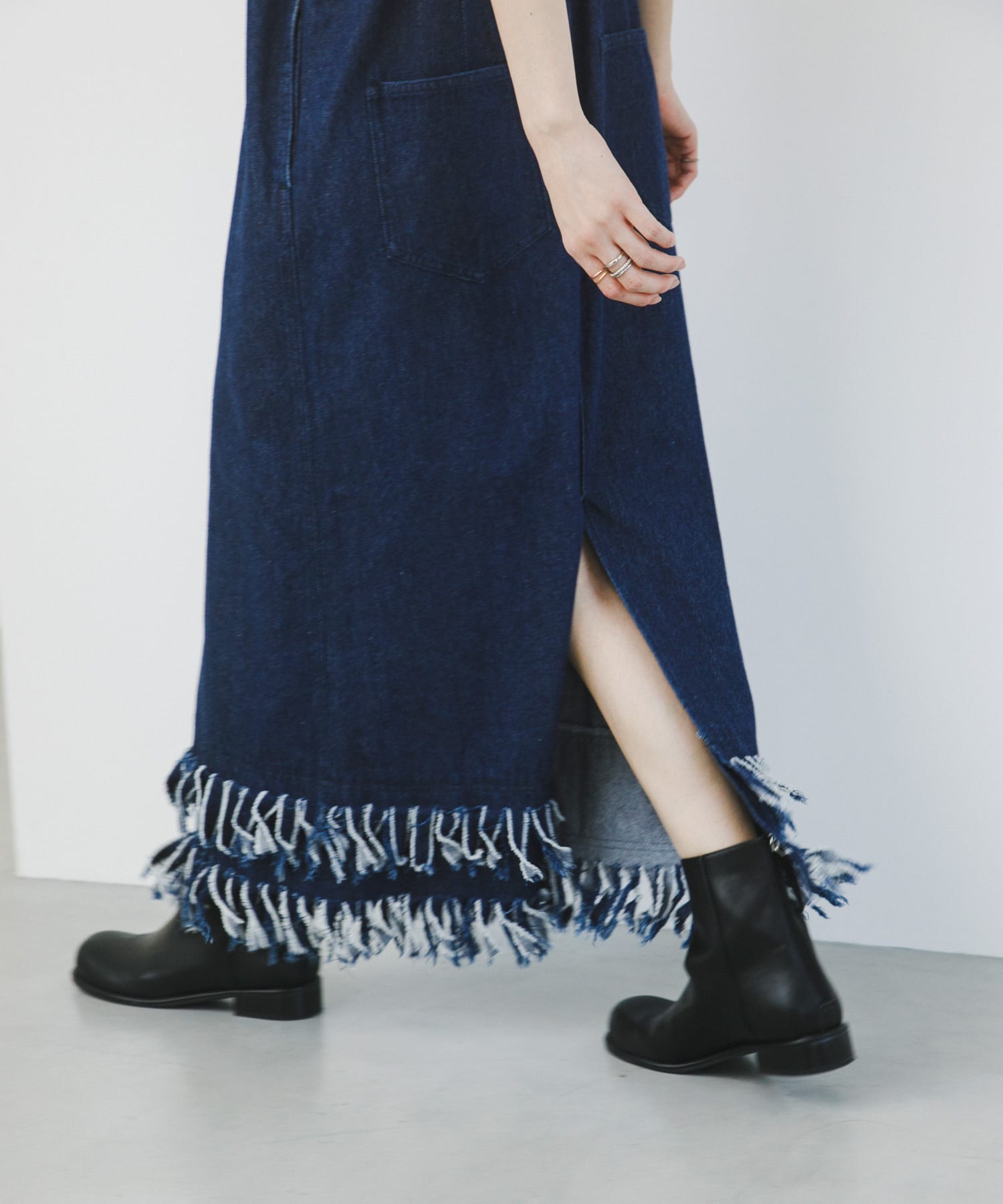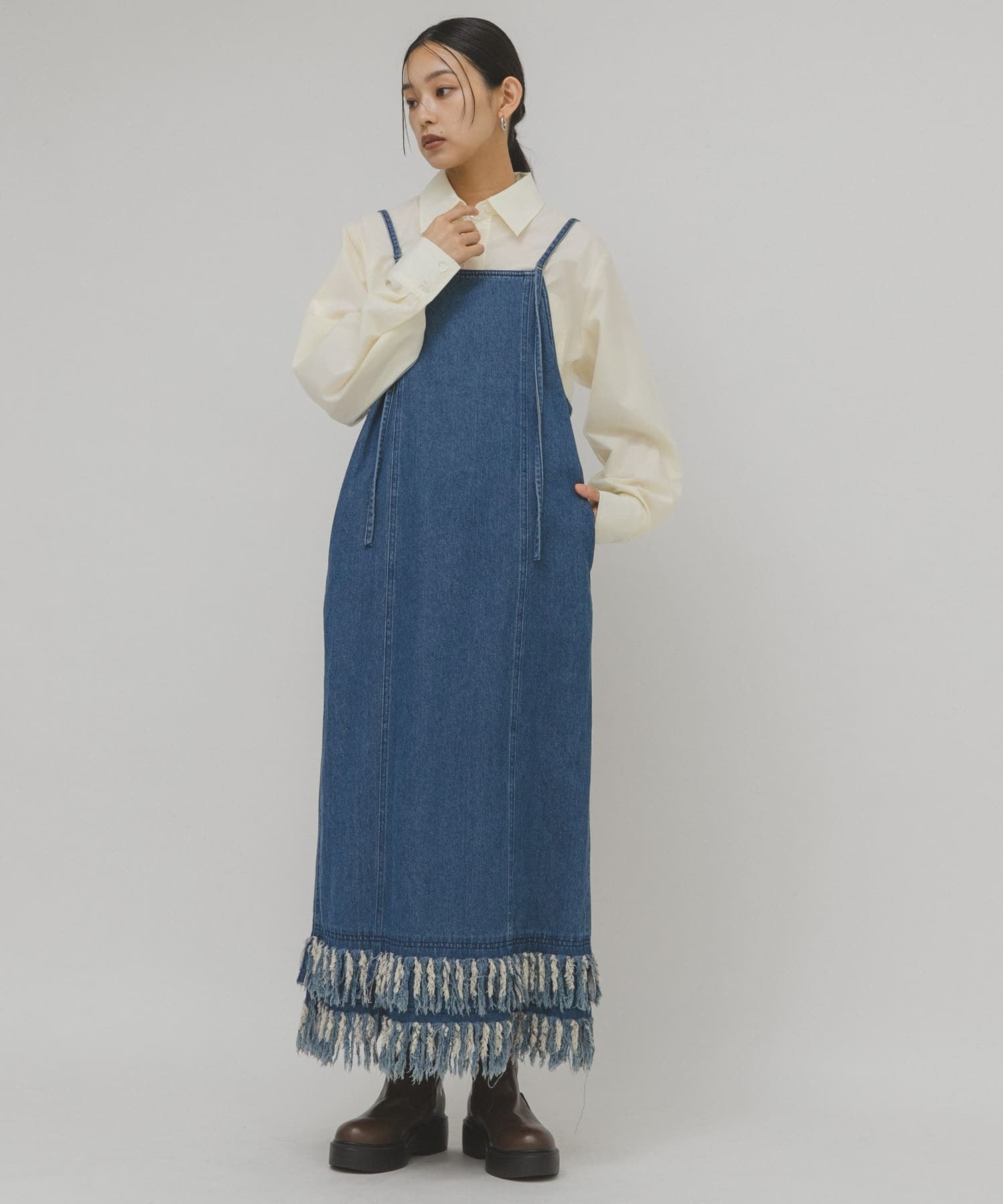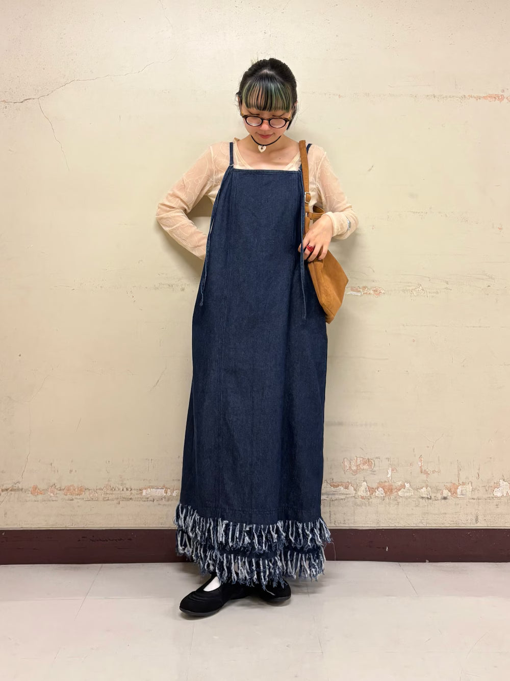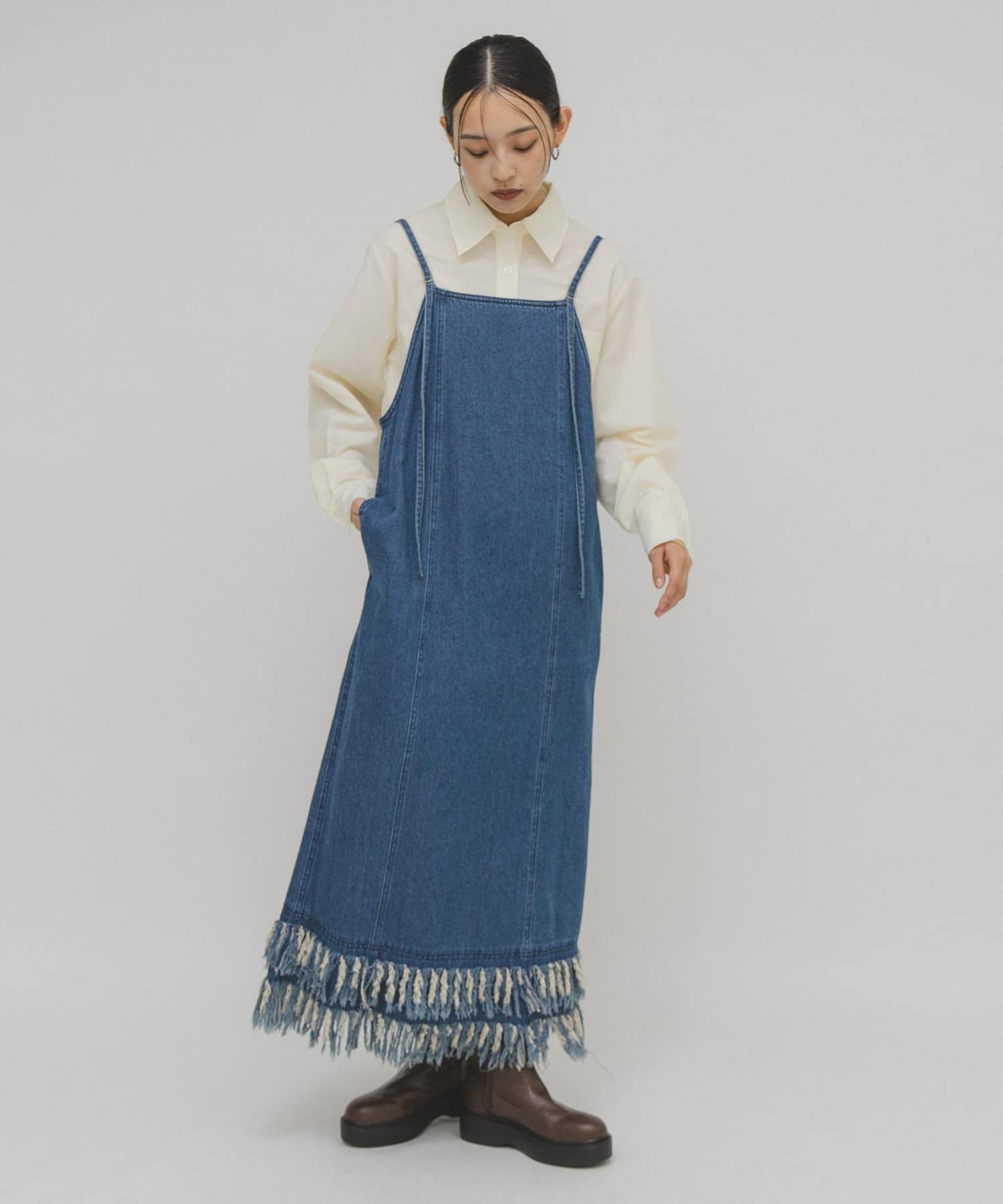 KBF 流蘇牛仔吊帶連身裙