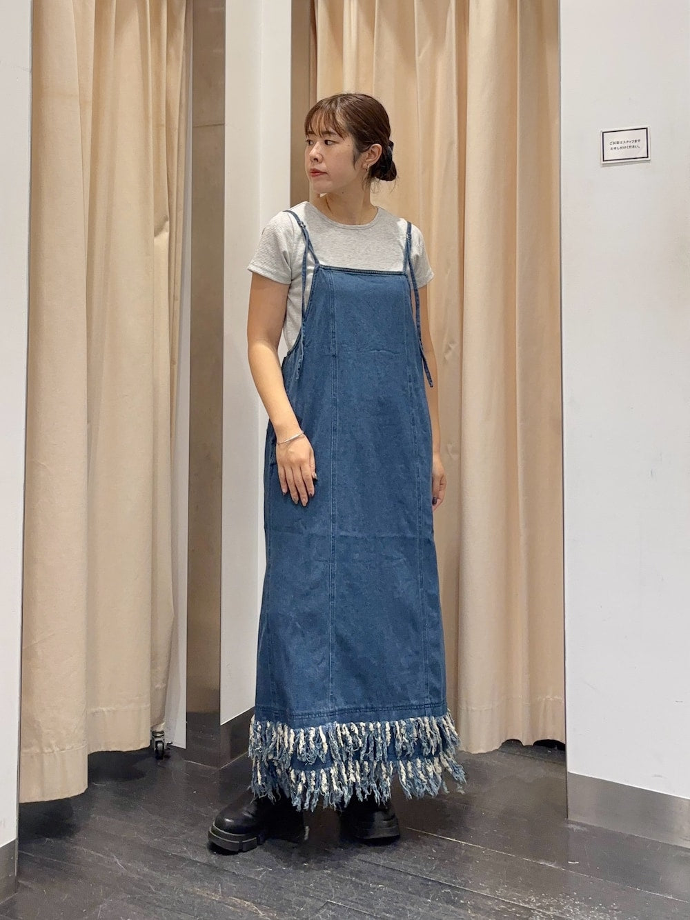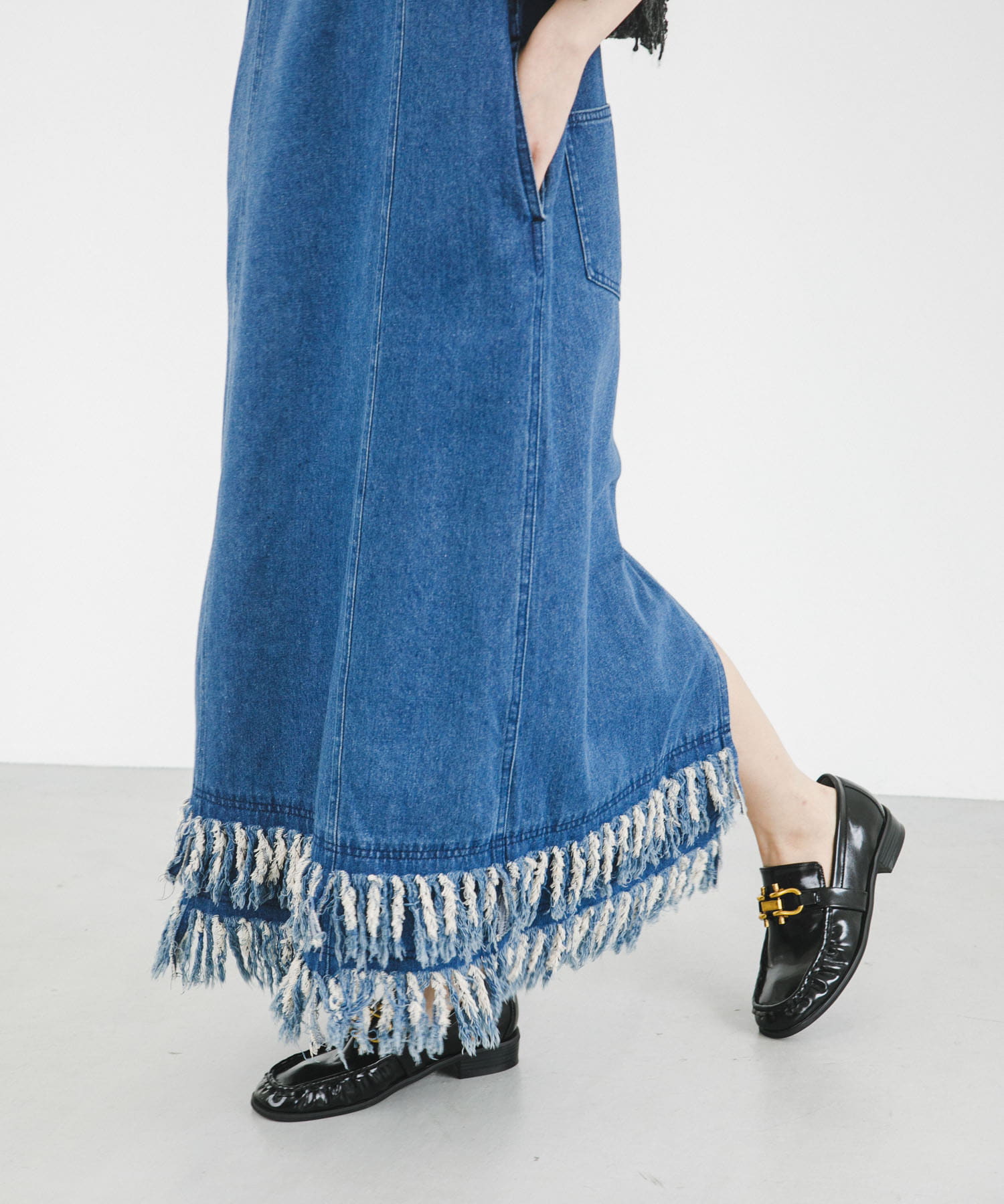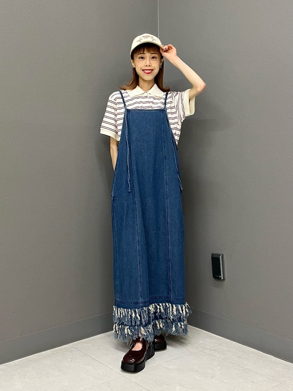 KBF 流蘇牛仔吊帶連身裙