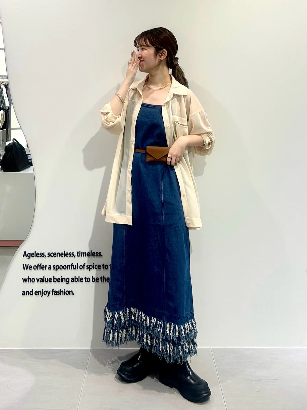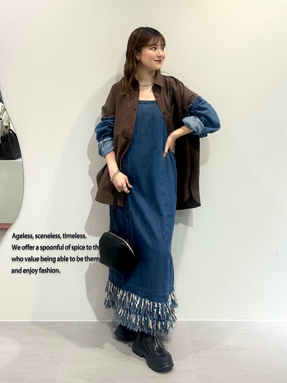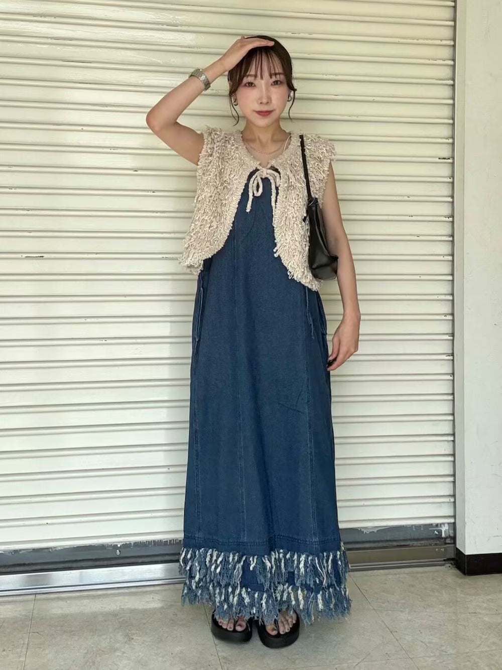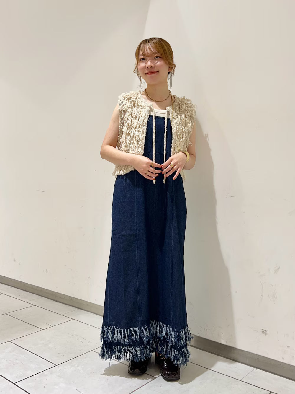 KBF 流蘇牛仔吊帶連身裙