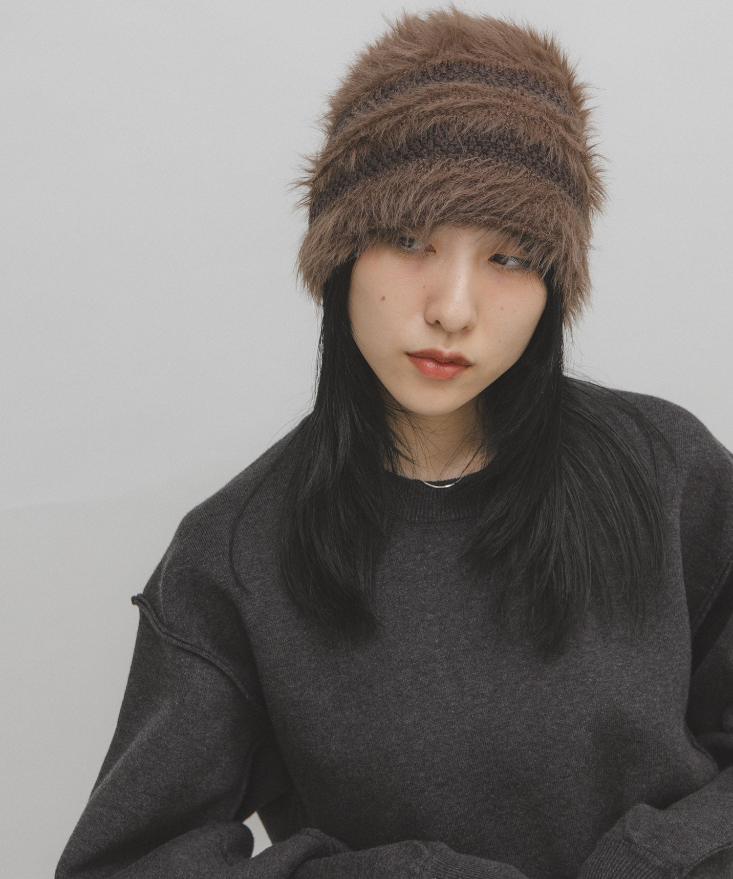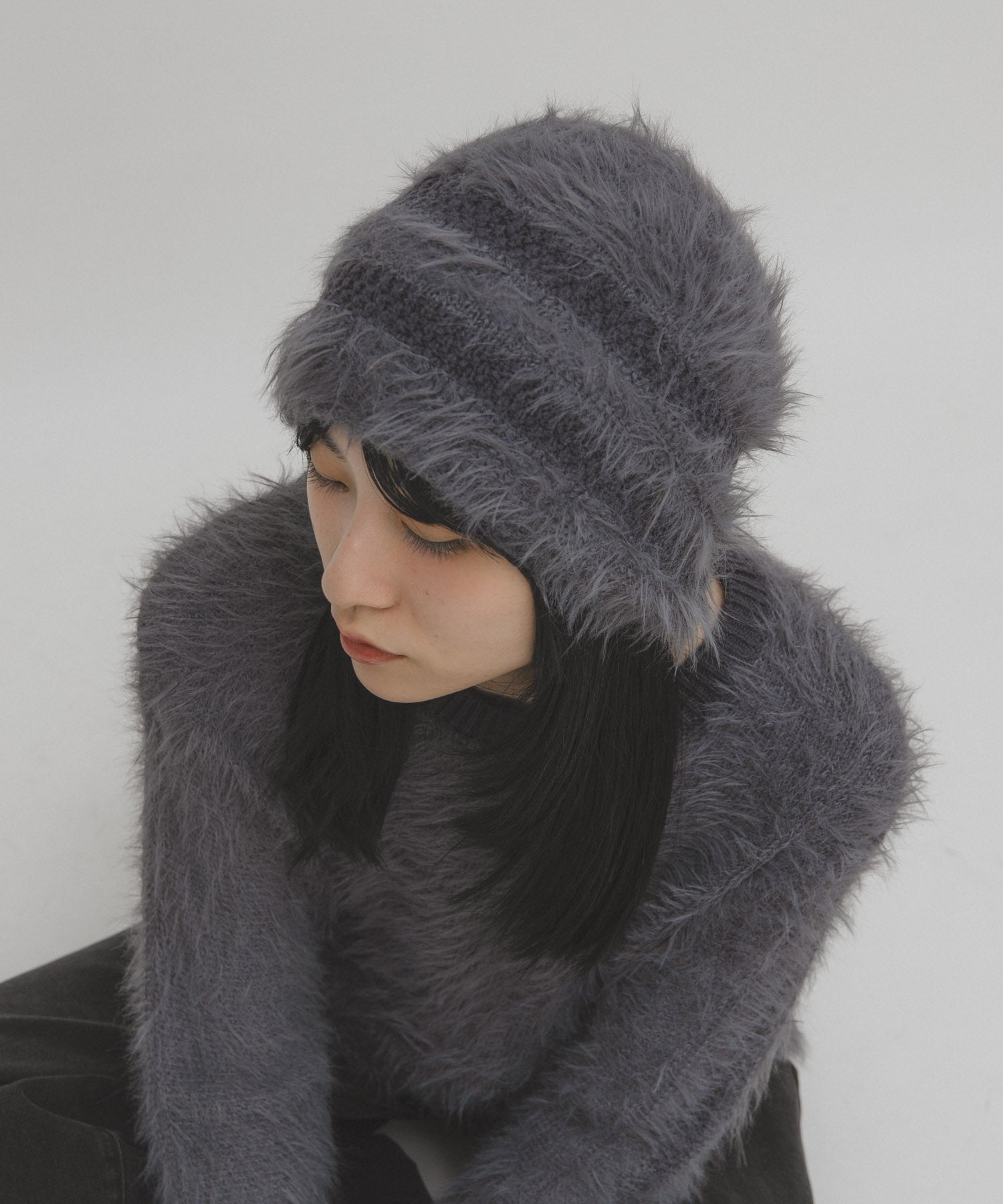 KBF line design shaggy knit beanie