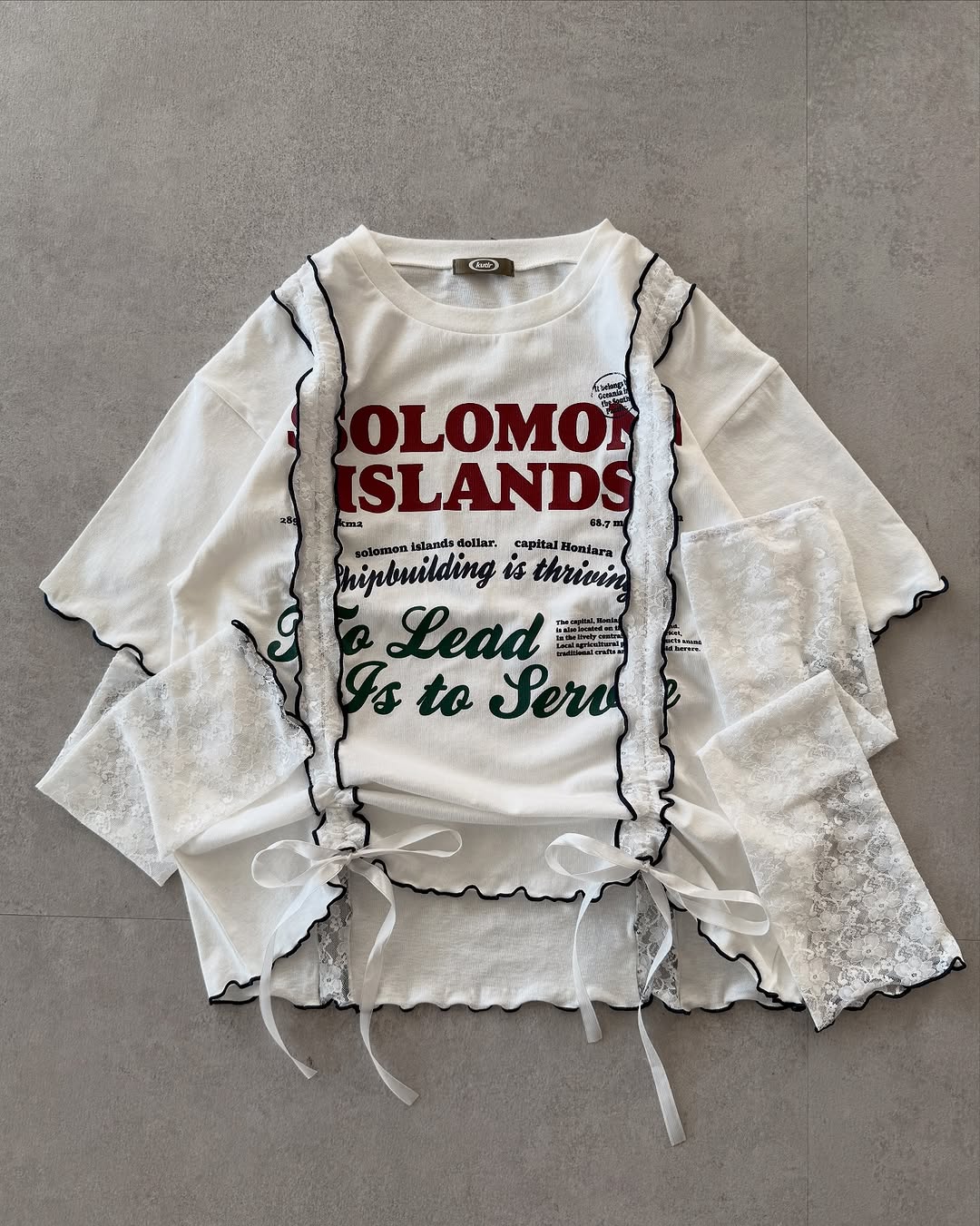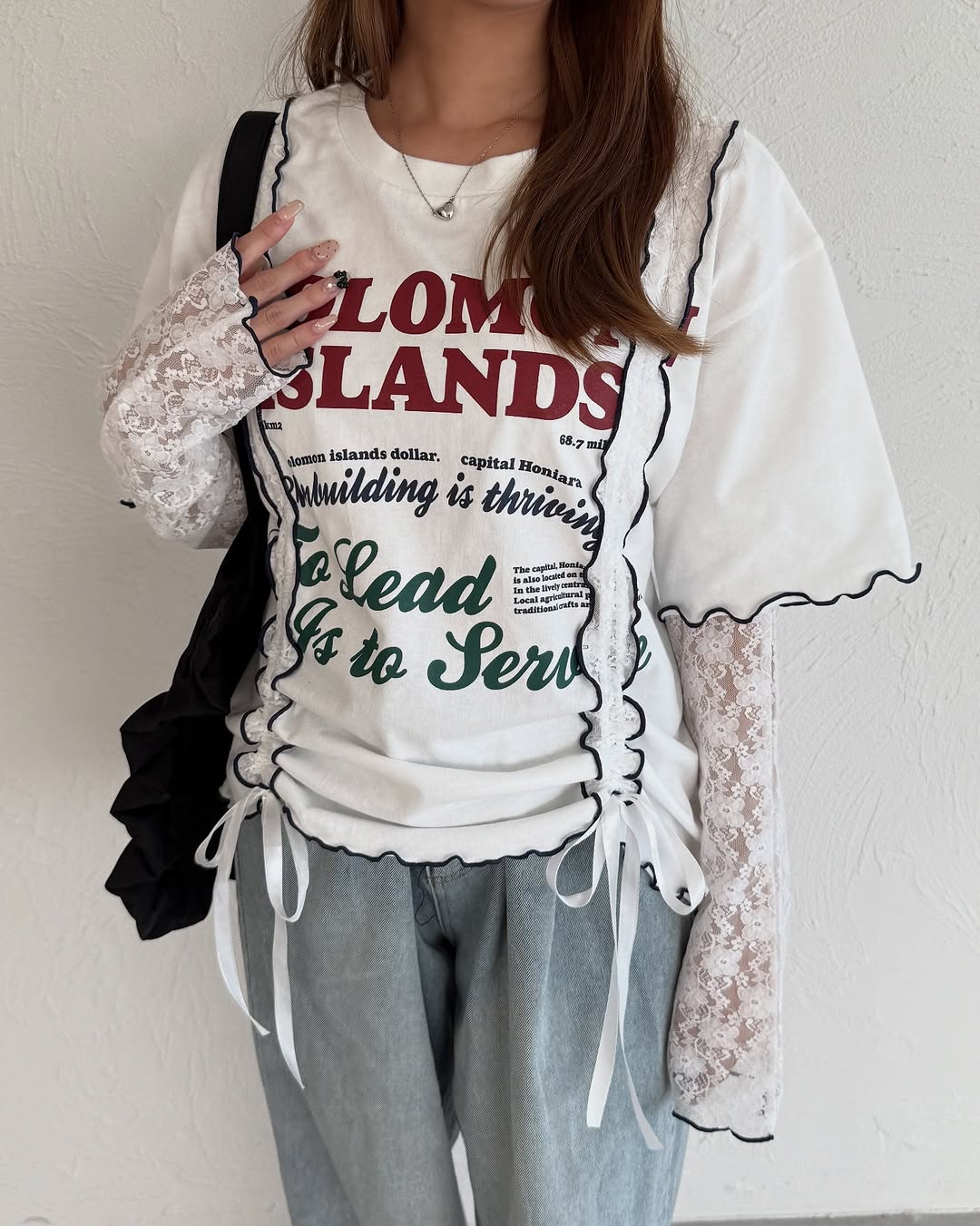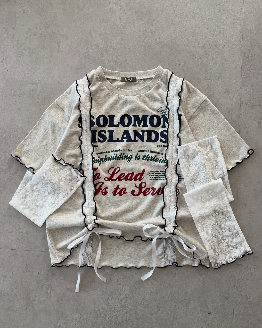 Kutir 連袖套Lace抽繩拼接Tee