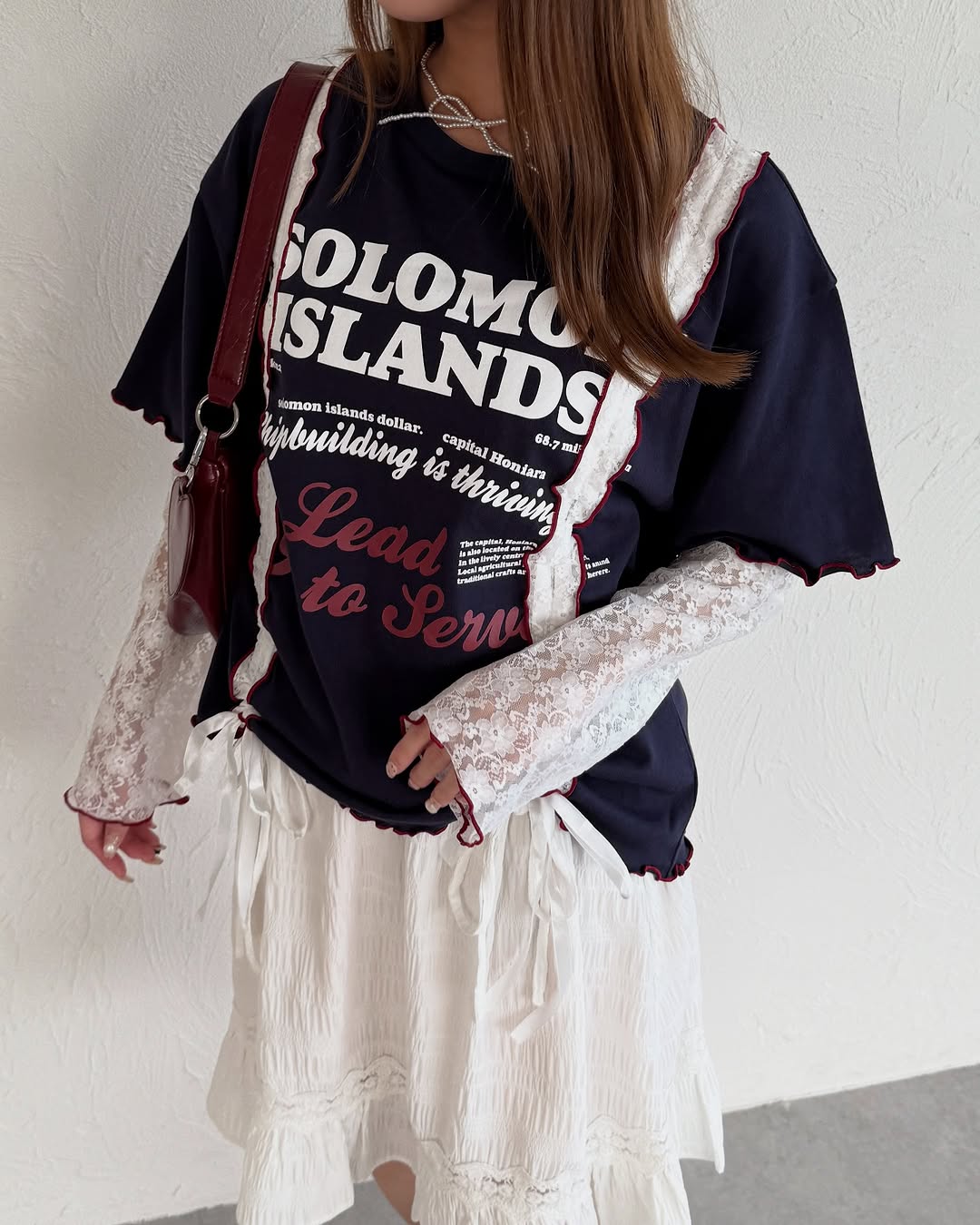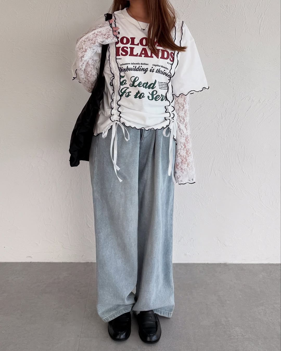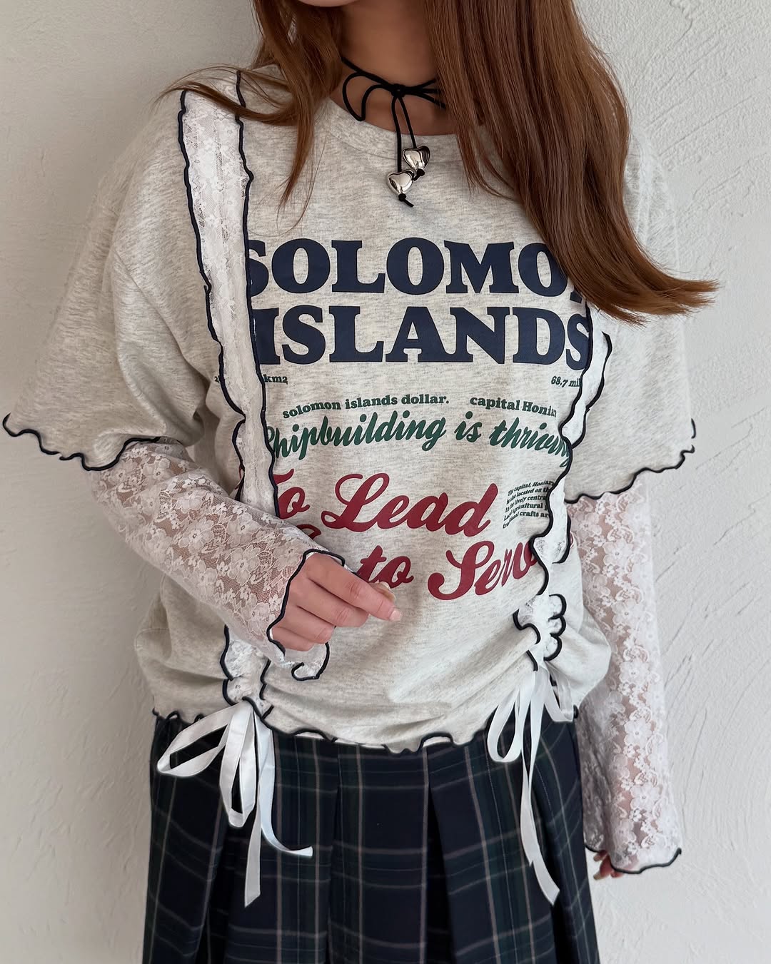 Kutir 連袖套Lace抽繩拼接Tee