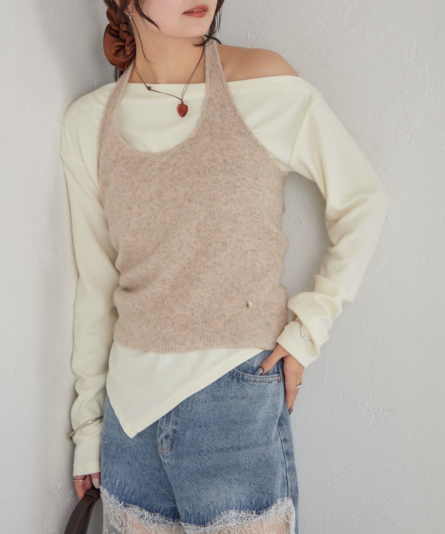 mystic Halter bustier set long T-shirt