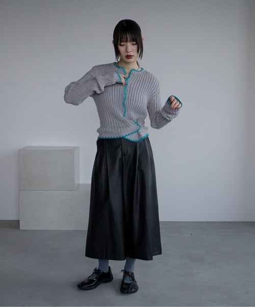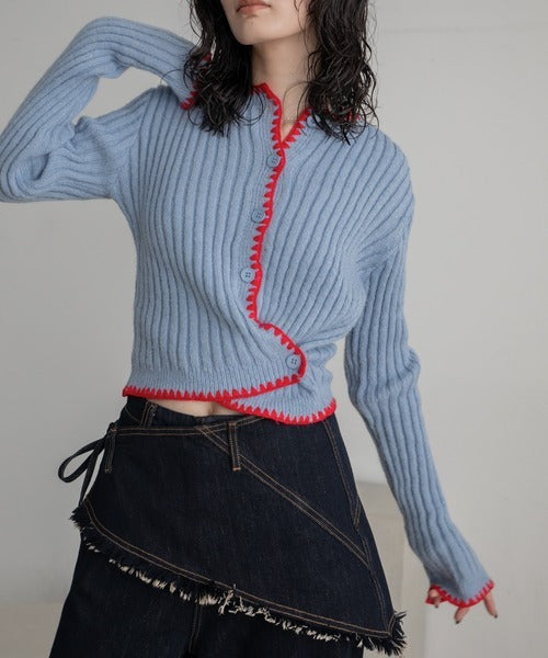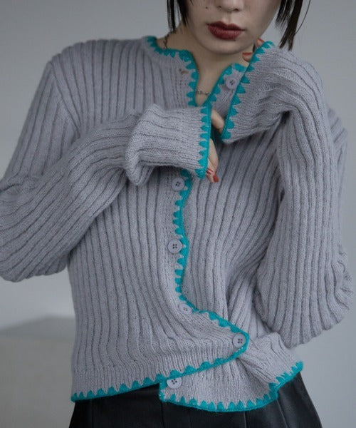 Vacancy 波浪羅紋拼色針織Cardigan
