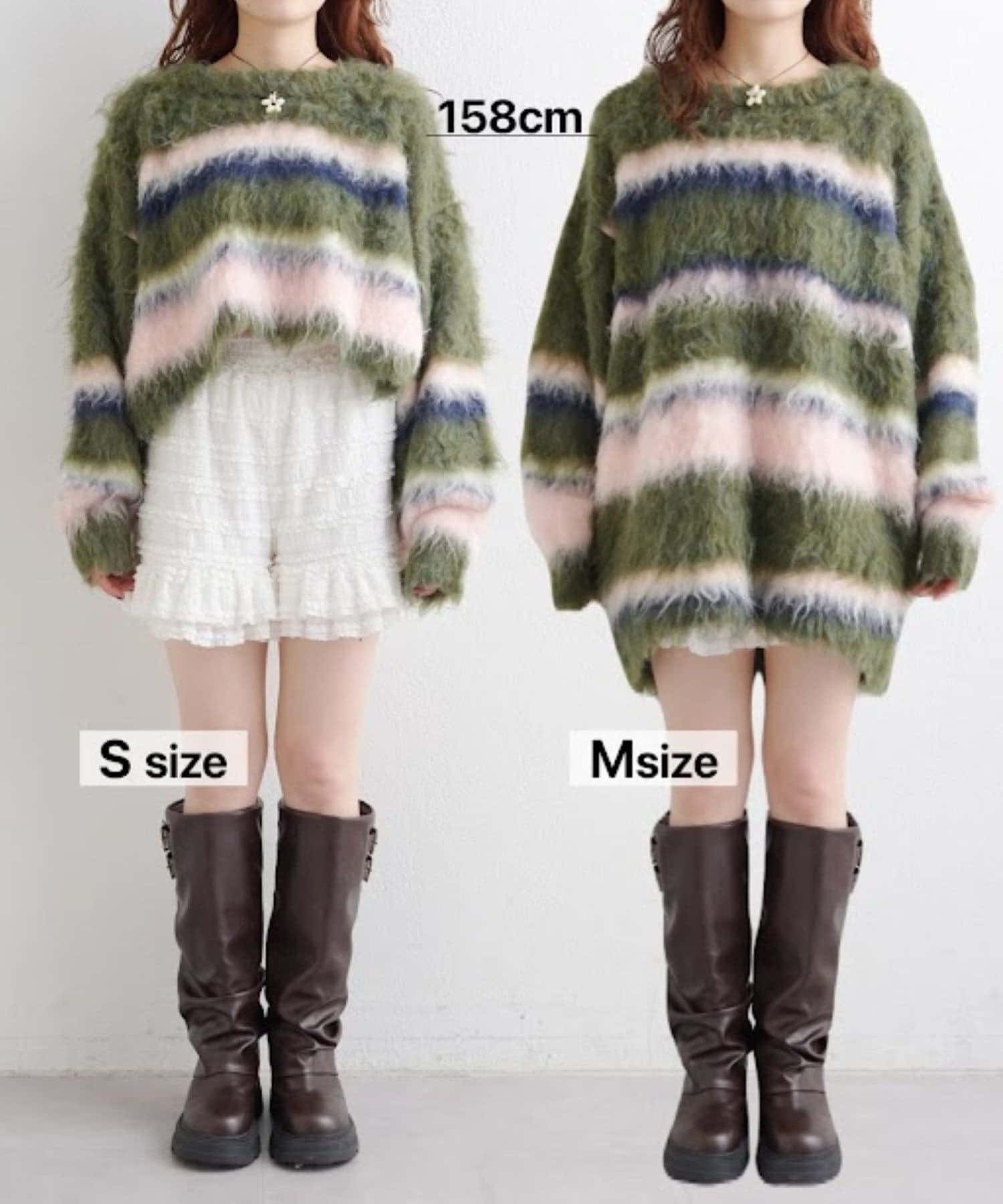 [長/短Version] w closet Border shaggy knit