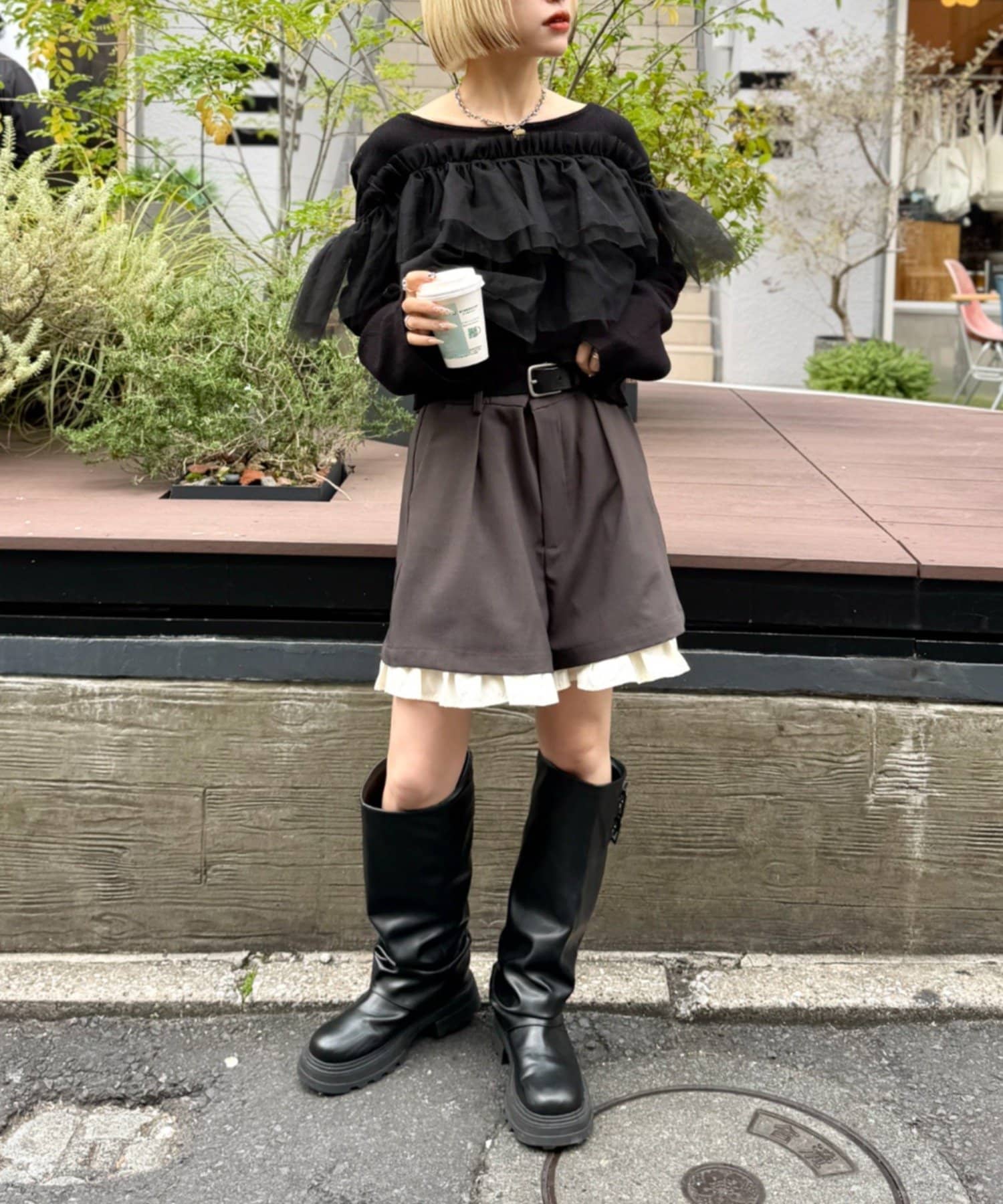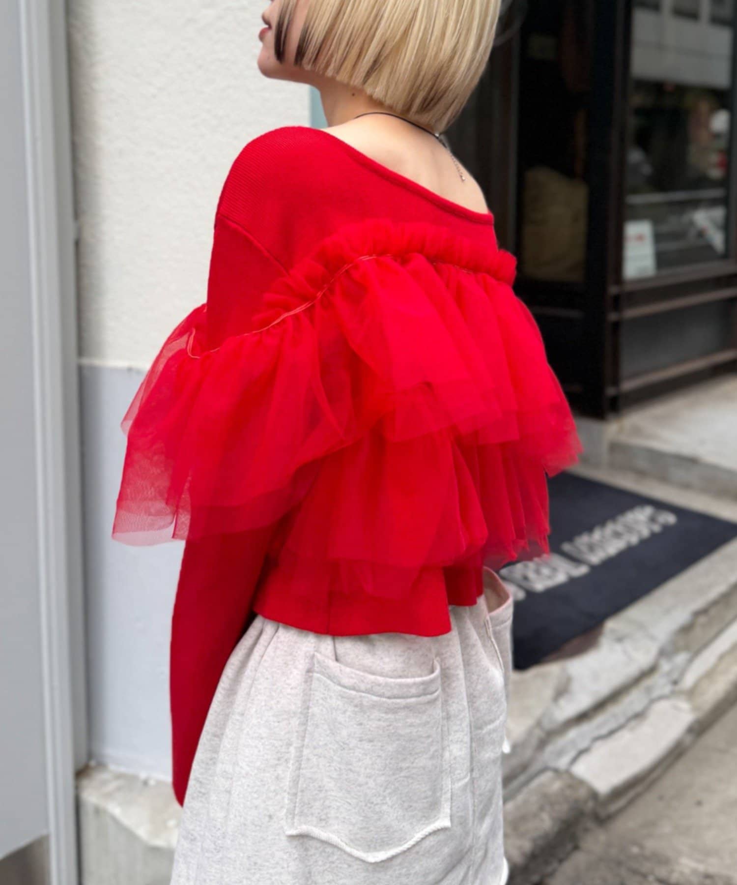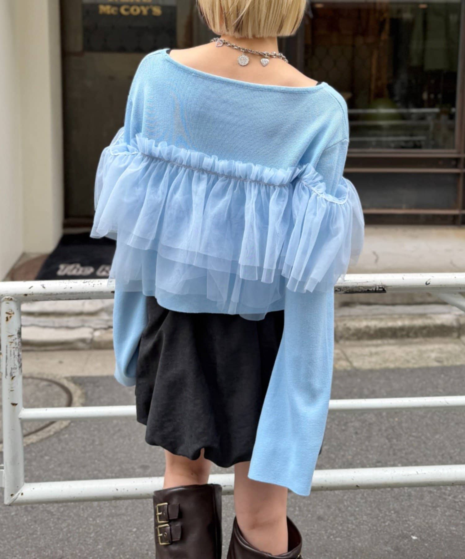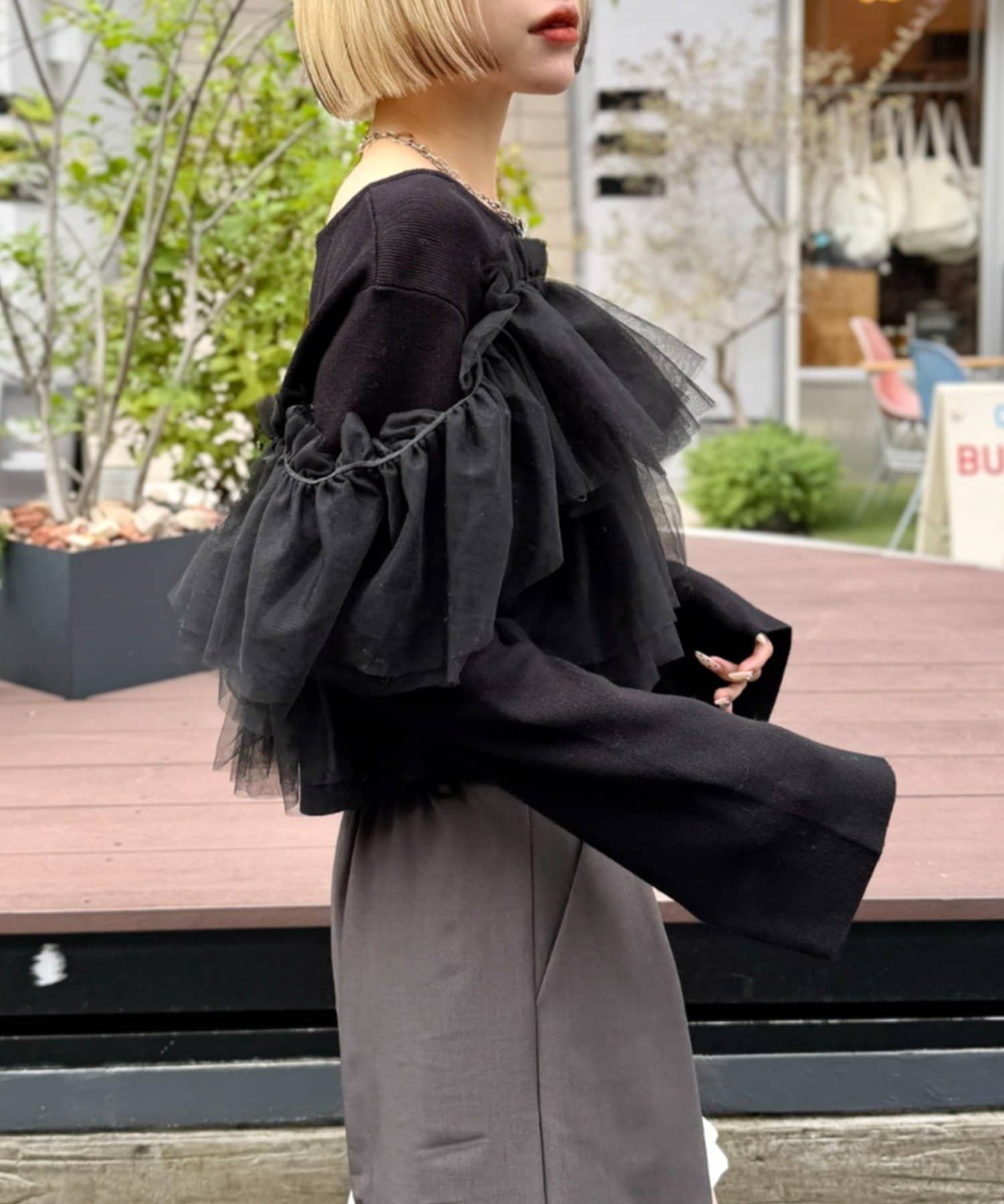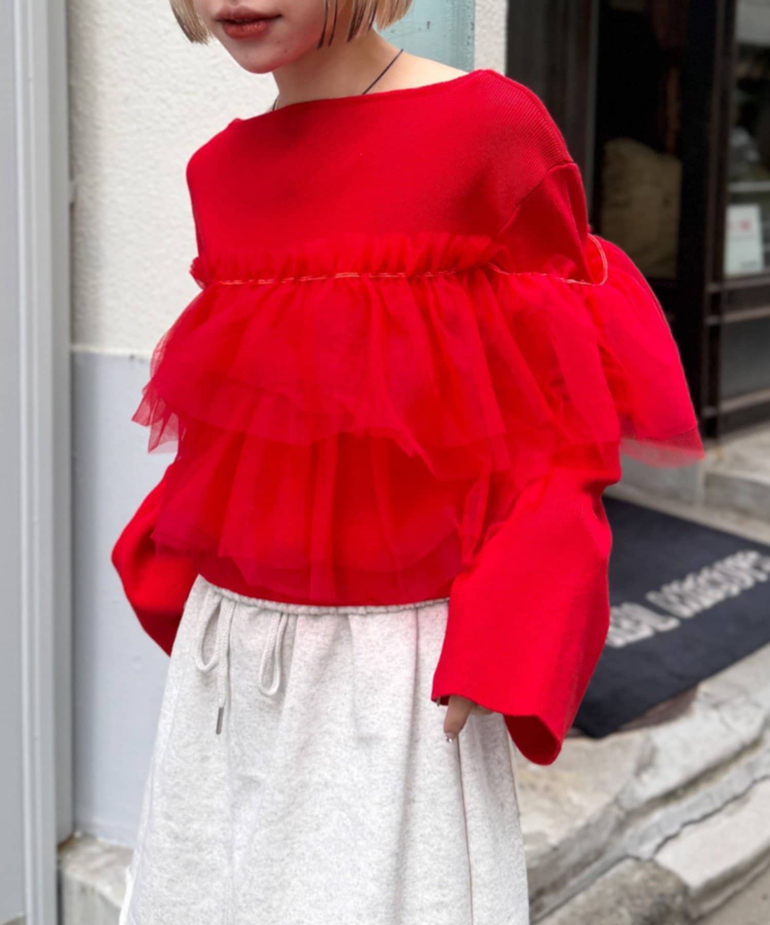 w closet 薄紗荷葉邊針織