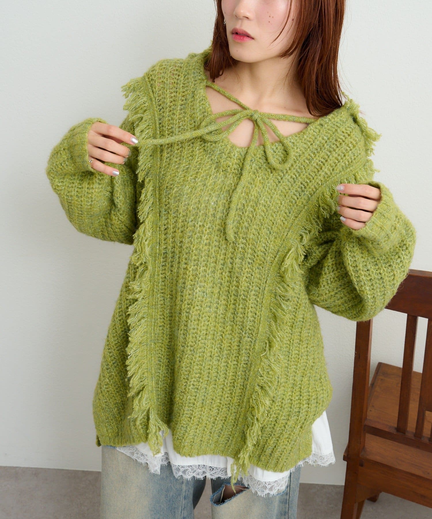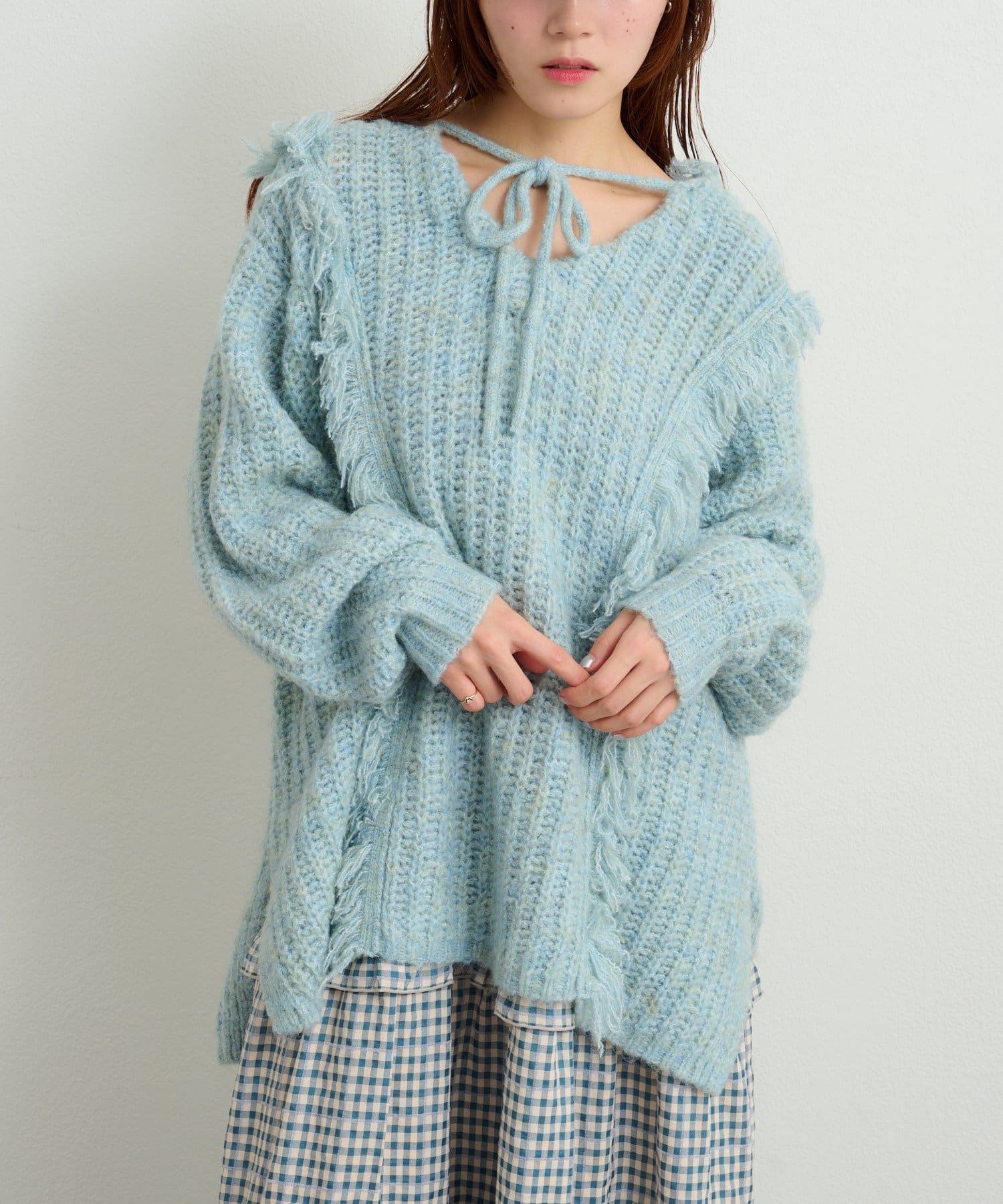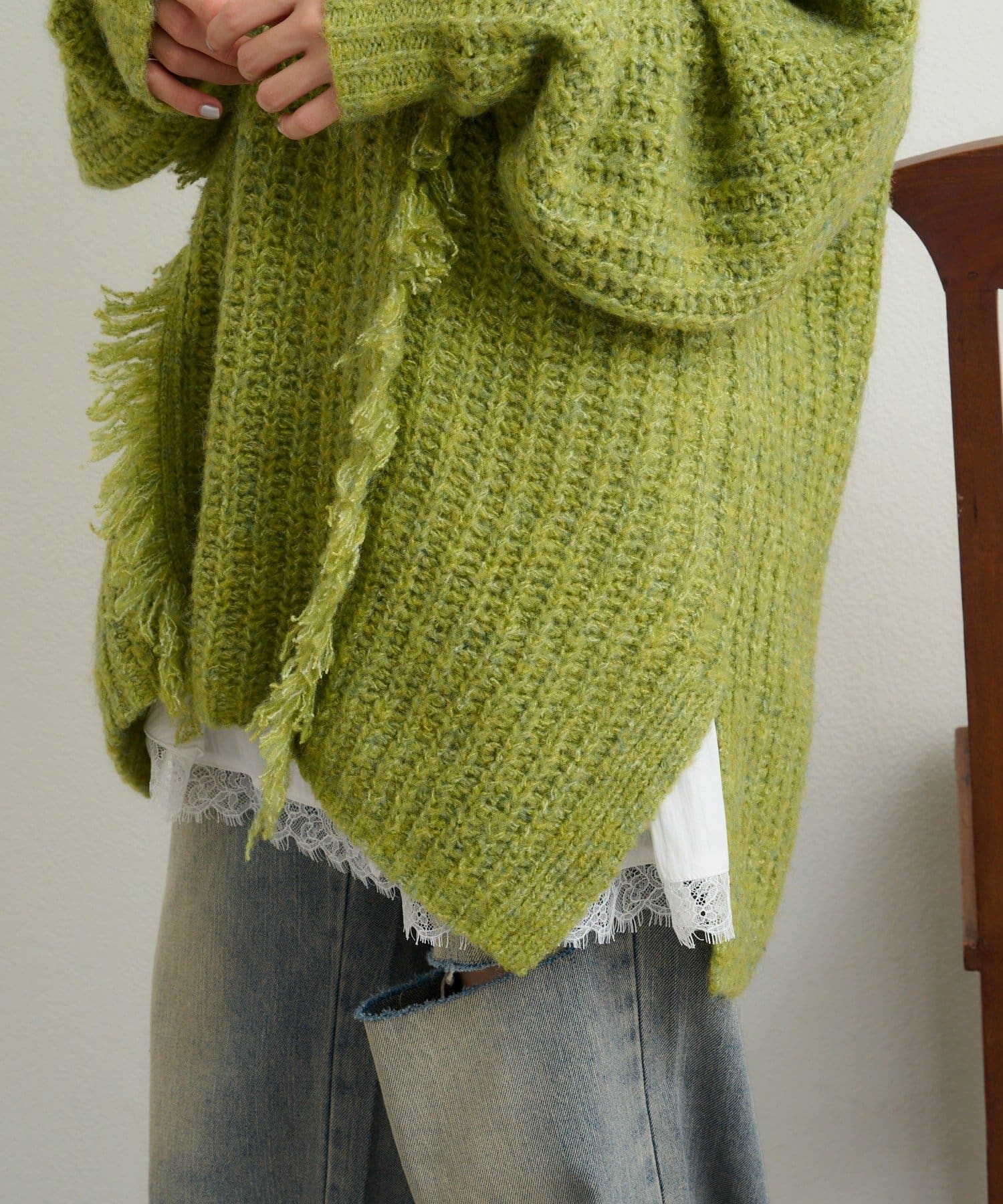 w closet 連帽流蘇混紡針織衫