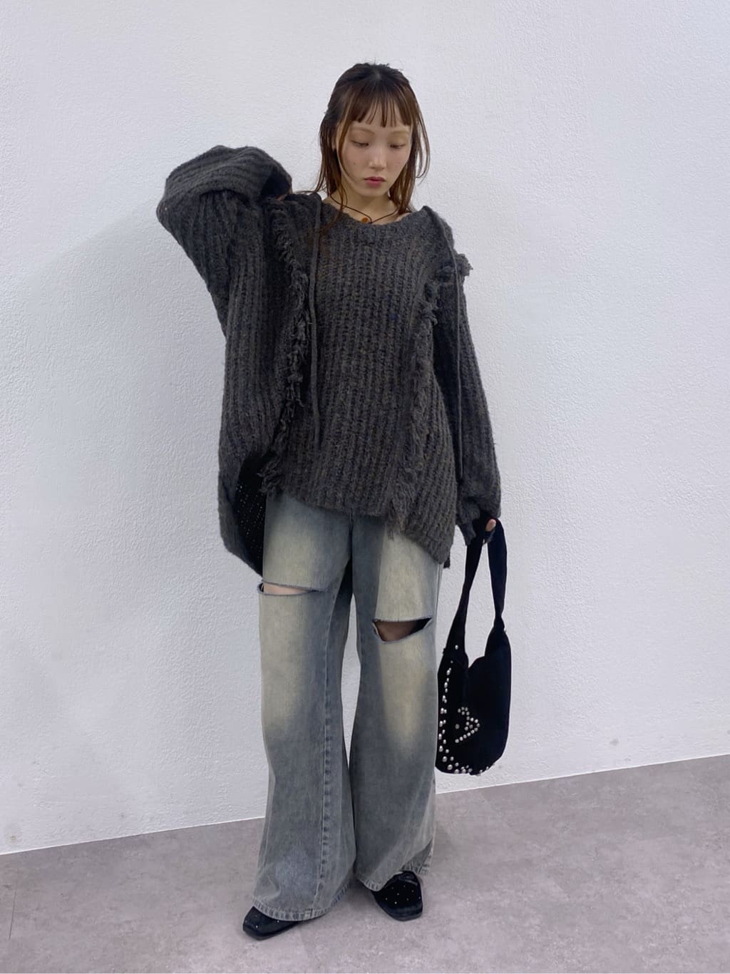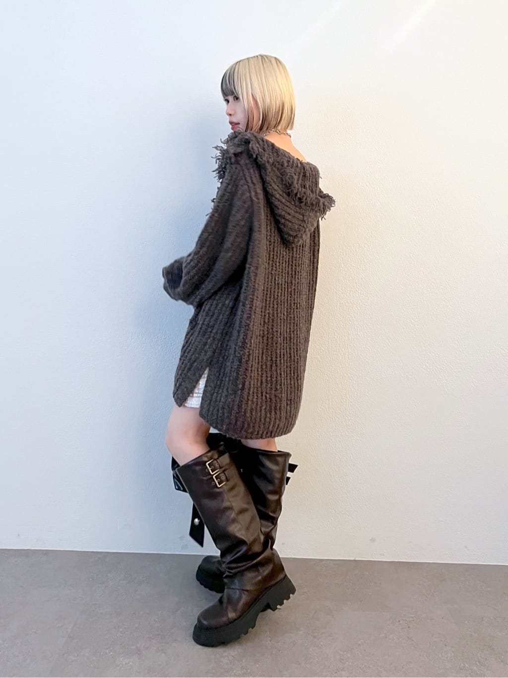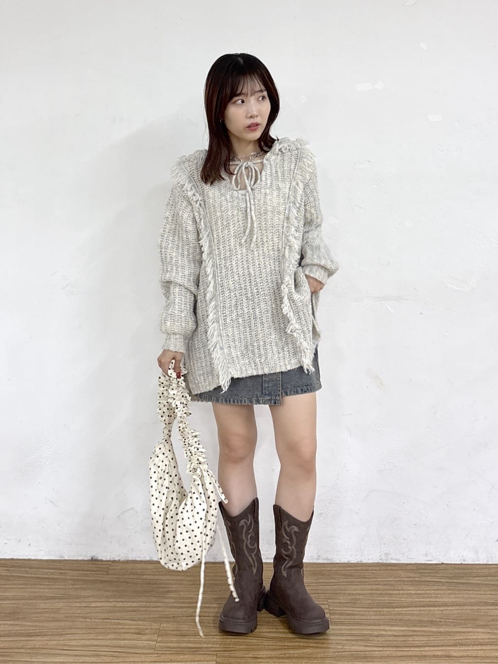 w closet 連帽流蘇混紡針織衫